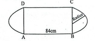 The figure below shows a sports field of a school. Given that |AB| = 84cm and |AB| : |AD| = 3 : 1. Find the (a) area of the sports field (b) perimeter of the field [Take π = 22/7]