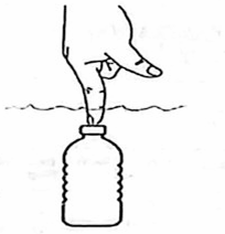 The diagram below shows an empty plastic bottle closed with an airtight stopper being pushed down into a bucket filled with water. As the bottle is pushed further down, it experiences an increasing upward push. This is because