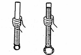 Two balloons of same size were tied to one end of two glass tubes of same diameter. Water was poured to different heights in the two tubes. The results are shown in the diagram. The results show that the size of the bulge in the balloon