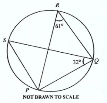 **DIAGRAM WILL BE PROVIDED.** In the diagram, \(P,Q,R,S\) are points on the circle. If \(\angle PQS = 32^\circ\) and \(\angle PRQ = 61^\circ\), find \(\angle QPS\).