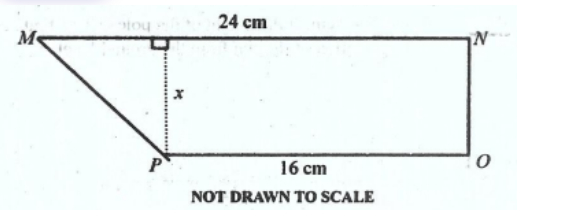 **DIAGRAM WILL BE PROVIDED.** If the area of the trapezium \(MNOP\) is \(300\ \text{cm}^{2}\), find the value of \(x\).