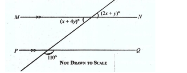 **DIAGRAM WILL BE PROVIDED.** In the diagram, \(MN // PQ\). Find the value of \((x + y)\).